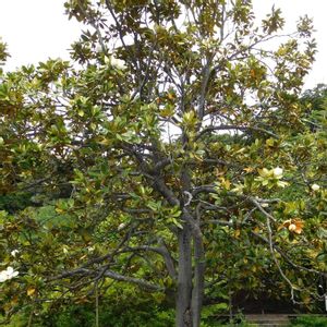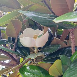 泰山木(タイサンボク) モクレン科モクレン属の常緑高木。北アメリカ原産で明治時代初期に渡来した。庭や公園に植えられる。深緑色の大きな葉はクチクラ層が発達し光沢があって、潮風や乾燥害から身を守る。葉裏は褐色の毛が密生し耐寒性がある。花期は6月。枝先に直径20㎝ほどの甘い香りの白花をひとつ上向きに開く。花被片は9枚で、うち花弁は6枚、一番外側の3枚は花弁にそっくりな萼片。果実は袋果が集まった集合果。1つの袋果に種子は2個だが種子のできない秕の袋果が多い。種子は長楕円形から卵形で外層は朱赤色。内層は淡黄褐色で光沢はない。種子から育てると20年かかるといわれるが、栽培品種の中には開花までの年数が比較的短いものもある。 明治初年に日本に入った頃は、常磐玉蘭(トキワギョクラン)と呼び、明治12年に来日した米国グラント将軍の来日を記念してグランド玉蘭と呼ばれた。グランドは雄大という意味があり、将軍の勇壮、雄大な意味を含めた泰山木となった。小石川植物園の園芸主任を務めた松坂直枝が1932(昭和7)年刊行の本で、司馬遷(しばせん💬中国、前漢の歴史家)の漢詩の一部が転じた『義は泰山より重し』という言葉から泰山木の字を提案した。 出典『身近な樹木図鑑』『草木の種子と果実』『樹木の名前』『薬草の呟き』