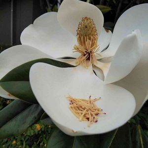 泰山木 タイサンボク 4日前はまだ蕾だった。ここ2日ほど、暑かったからね。 一気に咲き進んだね。 シベを受ける花びらは、手のひらより、大きいよ。 花びらは、9枚。 花径50㎝程。 芳香有り。 マグノリアの香り?