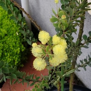 四季咲きのアカシア、ウィーピングワトルが咲きました〜😆 ちなみにこちらは、2代目。 1代目の子は一昨年ネキリムシにやられて😭 だからオルトランめっちゃまきまくってます🤣