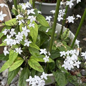 花友さんに貰った アラビアジャスミンが 又咲いています🌸◦° 開花記録✍️の為 投稿させていただきます(✿◠‿◠) 熱帯アジアでは年中開花の様 ですがはてさて沖縄ではどうか? モクセイ科 ソケイ属 和名:マツリカ