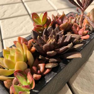 ブラックキング エケベリア属 双頭でお迎えしたキングさん お花を✂した後は‥ ブランター植えと鉢植え どちらも20cmちかく 有ります💕