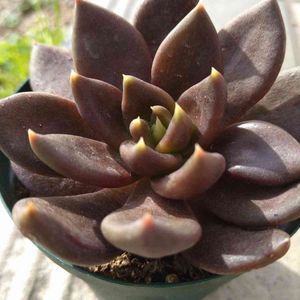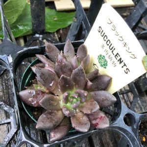 多肉植物 『ブラックキング』 昨日 よく行くお花屋さんにてお迎えしました。 多肉植物を好きになってから、いつも行くお花屋さんに多肉植物があるのは気になってましたが、なかなか見に行けず、やっと行けたので早速お買い上げ♡ 近くで良く見たらどの子も凄く立派(*○o○) それなのに、お値段は『えっ?!本当にそのお値段でいいんですか?!』っていうくらい。 まとめて3つ気に入った子を我が家にお迎えしましたよ。 で、この子がお気に入りその① 直径約12㎝くらいかしら。 プラ鉢から凄いはみ出ててギューってなってるから植え替えましたよ。 大丈夫かなぁ💧