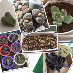 今日の収穫下の2枚、リトさん6鉢とブラックキングの7個🍀💖 ↖︎洗濯物と衝突事故のリトさん😵😰💦 ↑花芽毎日絶賛成長中のリトさん💓 ↗︎100均のジュレた葉っぱを取って残ったチワワちゃん💖 真ん中⇨十月に芽が出たばかりの赤ちゃんをメルカリしたリトさん!大きくなりました‼️!💕