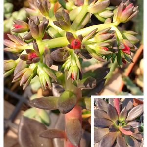Echeveria 'Black King' エケベリア ブラックキング のお花。 エケベリア、好きな品種たくさんあるのですがすごくすごく苦手で。 何度育てても形崩れるし枯れてしまうしで… これはもう相性悪いから手を出さないと決めて10数年。 2年前のお正月。 栽培環境も変わったし 今ならいけるかもと思いお迎えした数株のうちのひとつ。 何とか枯らすことなく、お花咲いてくれました。 黒い葉っぱに赤い花。 うん、かっこいい。 気が付けば9月。 少し前に見つけてた蕾、 気が付けばお花も終わりかけでした。 でも、終わった花の色も、好き。 同じお花の少し引きの写真、ひとつ後にあげてます。