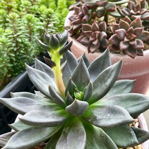 Echeveria 'Black King' エケベリア ブラックキング 花茎もいい色。 引きでも1枚。 アップの写真はひとつ前に。