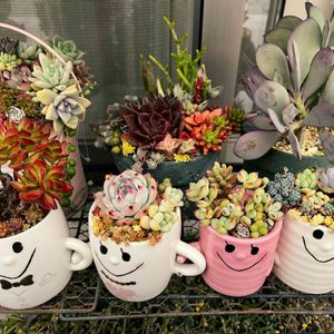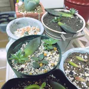 休日のすきま時間にせっせと 古い鉢や寄せ植えを解体する作業💦 気づけば3月が終わりかけてる😅 寄せ直しにはダイソーエケベリアに 活躍してもらいつつ…解体寄せ植えの おもしろい形の苗も入れ混ぜつつ 雫さんから送っていただいた ピータン達を遊ばせてみました♫ メルヘンチック🧚✨笑