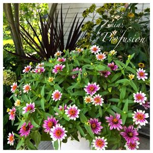 ✽.。.:*・゚ ジニア🌸🍃 プロフュージョン ✽.。.:*・゚ ①2ポット8号鉢でモリモリ咲いて きました♪ 玄関前が華やかになって嬉しい🙌 ②1週間前の1日日向に置いていた頃のジニア🌸🍃 夏に強いジニアでも今年の夏は、暑過ぎですね。 後ろにルドベキアが有るのですが写真を整理していたら4枚に💦 後日、投稿しますので見て下さいね💕 🌸🍃✽.。.:*・゚ ✽.。.:*・゚ ✽.。.:*・゚ ✽.。.:*・゚
