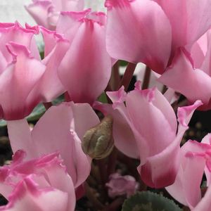 シクラメン🌸 ピーン❗️っと元気なシクラメン❣️ かわいい〜😆💖 いつも冬の間にダメにしちゃうけど 今回はいい感じ⸜(*ˊᗜˋ*)⸝⋆* 今年は初めての夏越えに挑戦出来るように 頑張ろう〜✧*。٩(ˊᗜˋ*)و✧* シクラメンちゃん🌸頼むよ〜 まん丸いのなんだろう🤔?? 取った方がいいのかな〜 メモ 24個セール苗の中の1鉢