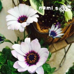超絶べっぴんさんを狭小コンテナガーデンにお迎え😍 オステオスペルマム アキラシリーズ 『ホワイトパープルアイ』 😣今日のガッカリ😣 とってもお気に入りで何度か投稿しているバラ咲きジュリアンとデニム色のポリアンサ。 またもや花びら食い散らかしの被害😱 んぉ〜、誰⁉️ しかも鉢のそばには食後のお土産まで🚽 フンガーーッ👹👹👹 まだどちらも蕾が複数控えていたから、食べられたお花はカットして、駐車場から玄関前にお引越し🚪 今月2回目だよ💦