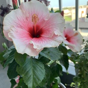 おはようございます☀ 日差しの暑さに参っちゃいますね🥵 🌺ハイビスカス🌺 今日は3鉢咲いてくれました 他の花鉢はお休み中なので ハイビスカスがベランダを賑わせてくれています♪