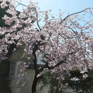 おはようございます お寺の境内の垂れ桜🌸 満開ですわよん🎵