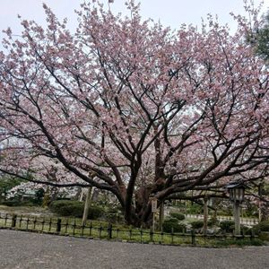 今朝の兼六園 無料開放最終日です。 染井吉野は散り始めて 第二段の桜が咲き始めました。 ①「兼六園熊谷」満開です。 ②向かいの赤松と接近しています。妄想兼六園物語より ③旭桜が満開です。 ④⑤梅林にある垂れ桜です。