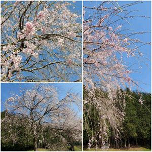 今春💞初めて見れたサクラ(垂れ桜)🌸 里山ののどかな風景と青空に映えて綺麗でした😍💖