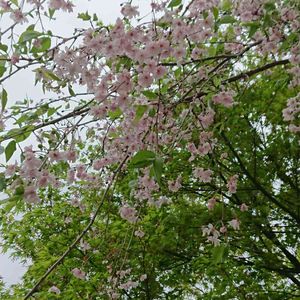 垂れ桜が 終わりかけで葉桜になっていましたが 緑と桜色のコントラストが優しい色合いで素敵でした。