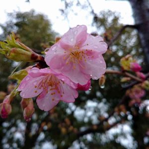 鴨川沿いの早咲きの枝垂れ桜が咲いていました🌸 雨あがりでお天気は悪かったですが、透明感のある花びらが滴と重なってきれいでした◡̈*✧
