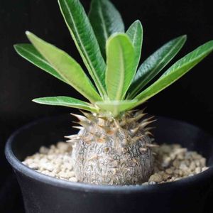 そしてこの子は我が家の5番目のパキポディウム マカイエンセさん 和名 魔界玉(灬º‿º灬)♡ さらに少し黒光りしている…! 写真では分かりにくいけど… これは買うでしょ(笑) お迎えした時は弾丸型だったけど今は壺型って感じ(*´ω`*)さらに成長点が3つに… 成長が楽しみです(✿^‿^)