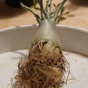 去年うちのパキポディウムの中で一番の劣等生の恵比寿大黒さん😄 植え替えで引っこ抜いてみるとあまり成長してなかった😅 どーりで😁 今年こそは成長しますようにと植え替え完了☺️