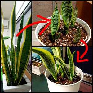 3年位前に頂いたサンスベリアさん☀️だいぶん葉がぼろぼろになったので今年の春に小さく植え替えました(^3^)/ こうやって見比べたら大きくなってる‼️