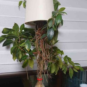 嫁がこのポットが欲しいと言い出してポチッと購入 最初はポトスを植えていたけど成長が早く根っこがふたを突き破った‼️ 一年前ガジュマルさんに変更して凄く動きのある木になりましたΨ( ̄∇ ̄)Ψ