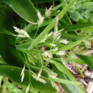 💠スズメノカタビラ(雀の帷子) イネ科 イネ属 ごく小柄な草であり、高く伸びてもせいぜい20cm。小さいものは5cm位でも花を付けている 地下茎はなく、数本が株立ちになっている。前株黄緑色で柔らかい 茎は葉の基部の鞘に包まれ、葉は平で短めの線形 真っ直ぐに出るが 先端がやや窪んで受けた形になる。時折り葉の縁が波打つようになる。花序は円錐花序で季節を問わず出る。花序の枝が横に広がるのが特徴の1つ。小穂は卵形、左右から偏平で数個の花が含まれているそうです