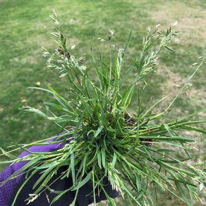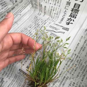スズメノカタビラです なんと😓 わが家ではこれも育ててます(笑) 鳥さんが啄んでたり遊び場にしたりするんで、ハコベとかも一緒にベランダでわさわさ幅をきかせてます😅