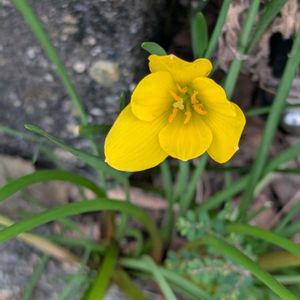 キバナサフランモドキかな 植えた覚えはないけど、少しずつ庭のあちらこちらに出てきています。 台風の雨で潤って出てきてくれたみたい😊