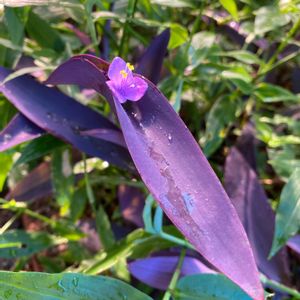 ムラサキオオツユクサです ムラサキゴテンとも言うらしいです 家族は珍しい種類で大切にしなきゃといいます ほんとかな?🤔 毒性があるらしくて、ちょっとこわいです😰 ほとんど放ったらかしです とても強いツユクサです