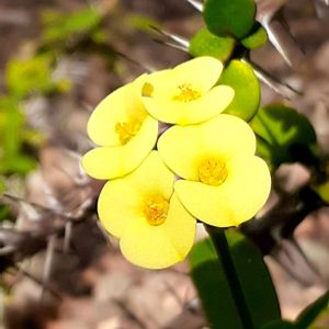 今日のお花 🍀ハナキリン トウダイグサ科 ユーフォルビア属 温室で咲いていた花麒麟の花 黄色 白色 朱色