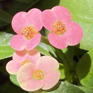 ᰔᩚ ᥫᩣ ハナキリン (ユーフォルビアミリーリア) 3年目)淡いピンク色でまた ボチボチ咲き始めてきました💕