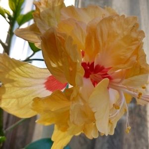 ハイビスカスレモンフラミンゴ なぜか赤いのが混じって咲くの