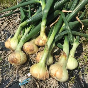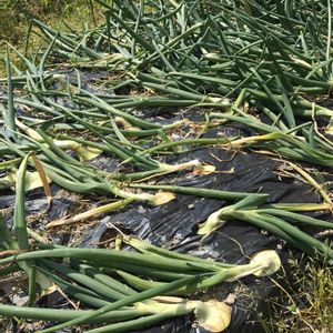 極早生玉ねぎ、ほぼ葉が倒れてるのでどんどん収穫していきます。