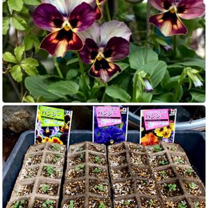 朝から秋晴れ🌞 一昨日、寄植えの苗を買った時、買わずにはいられなかった今年初めてのパンジー💓 10月5日に種まきしたパンジーは約3週間経ってやっとこのサイズ、、、うまく育つかしら?早々とパンジーの投稿している方々を見て焦ってしまう。 このチビ達が立派な苗に育ったら、友達にプレゼントすると約束してる…。