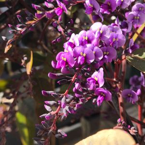 ベランダのハーデンベルギアが七分咲き✨ 一つひとつのお花がかわいい💕 今日は風が強く、簡易ビニールハウスの被せてるビニールが半分飛んでた😱 古い物だから、サイズが合うビニールが売ってない。