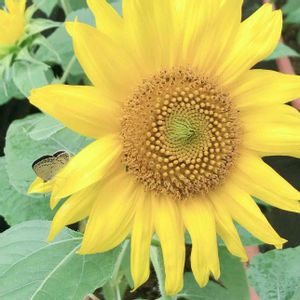 買い物に行く途中の道のヒマワリ🌻🌻🌻 今日もまた通り掛かったら、ちょうどシジミチョウが来ていました〜🧚🧚