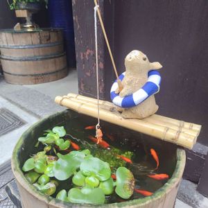 お店の前でかわいい手水を見つけました💕💕ちゃんと疑似餌まであるし、浮き輪をつけて溺れないようにしてる姿が愛らしかったです(๑ÖㅁÖ๑)キュン❤ฺ
