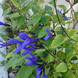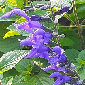 真夏のときは 少しおとなしかったのに… またまた勢いよく ✂️切っても切っても 増えていくサルビアガラニチカ 涼やかな顔して… とうとうお庭の通り道さえ 埋め尽くしてしまうほど! 🌿葉っぱも美しく 水あげは悪いけれど 他のお花とともに生けることしばしば… まだまだ楽しませてくれそうですね