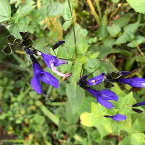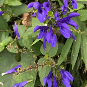 今日のお花、サルビア(来路花)...で良いかな? サルビアと言うと、赤い花をつけるサルビアスプレンデンス(緋衣草(ひごろもそう))を指すそうですが、サルビアの仲間はセージとも呼ばれ、その品種は900種以上も有るらしいです。 これは、サルビアグアラニチカ(サルビアガラニチカ、メドーセージ)かな?