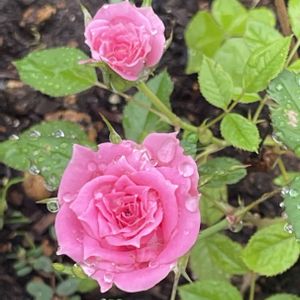 おはようございます😃 鉢植えのミニ薔薇が、涼しくなって、又咲きました。☂️に濡れて生き生きしています。