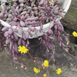おはようございます😃 多肉植物のルビーネックレスの花が、今年も咲き始めました。 葉っぱ?が紅葉して綺麗です。