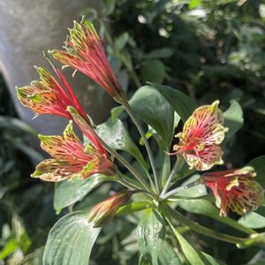 おはようございます😃 椿の木の下で、今頃アルストロメリア・プルケラが咲いています。