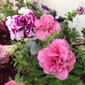 ✿·* 八重咲きのペチュニア2種💓 蕾が毎日開花しています😍💕🙌 コリウスさんもモリモリ(*•̀ᴗ•́*)و ̑̑