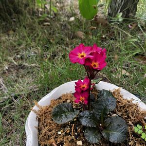 銅葉プリムラジュリアン 3/10の投稿と比べると、ピンクが濃❗️ 大体のお花って寒いと花の色が濃くなるのかと思ってたんだけど… まあ、いろいろあるかー😄 🟡最近のマイブーム🟡 バナナの皮を細かく切って土に埋めること 友達が、野菜クズを土に埋めると土が肥えてよいと バナナが好きなので、バナナでトライ中🍌 効きそうな気がする