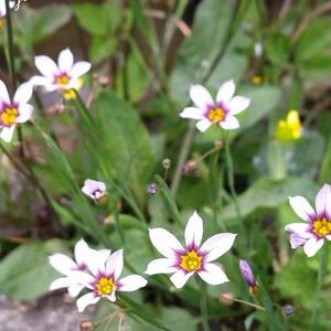 こんにちは😊 パンの耳をお堀のソウギョにやりに行ったら石組みの辺りからニワゼキショウが咲いていました いつもの年なら沢山のソウギョが争って食べに来るのに今日はどうしたのかソウギョがすごく少なくて、 競争もないからガツガツしていません どうしたんでしょう?🤔