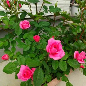 こんにちは😊 ピンクのミニバラ元気です🌹 今年はたくさん蕾をつけてくれました✨ しばらくはテラスが賑やかになりそう🎵 今日も1日元気に過ごせますように🍘