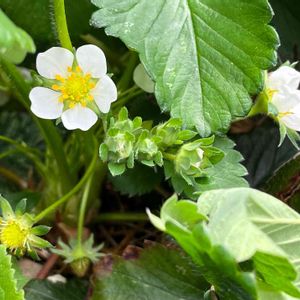 苺の花 プランターで育ててます。 この時期、花の後の真っ赤なイチゴを想像します。 これから、ダンゴムシとナメクジとの戦いが始まります(笑)