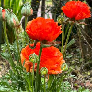 ラナンキュラス 栄養満点の土で育って、花・茎、共にガッチリしてます。 濃いオレンジ色と健康的な姿から毎日、元気をもらってます \(^-^)🧡