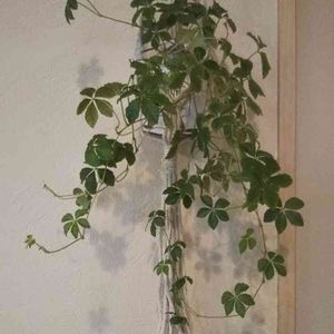 3年目くらいのシュガーバイン☘️ もう枯れちゃったかなーと 思ったときもあったけど 元気に伸びてきました💚 マクラメハンギングに してみました✨ あばれてる?! でもかわいいです💞