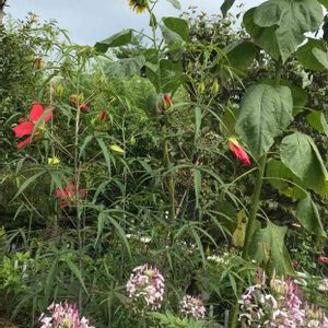 クレオメ、向日葵🌻、モミジアオイ🌺、どれも引けを取らず綺麗に咲いてます✨👍