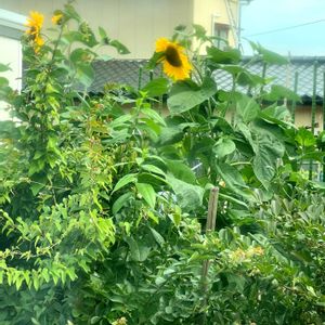 ひまわり 咲いたෆ。٩( ᐖ )و 野菜も実り🤗 菜園も((o(´∀`)o))ワクワク
