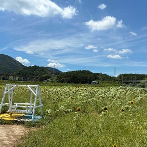 おっきな🌻ひまわり🌻 一昨日行った唐比ハス園にて😊 pic③ひょっこり🌻ひまわり🌻 フェンスの上からこんにちは😊